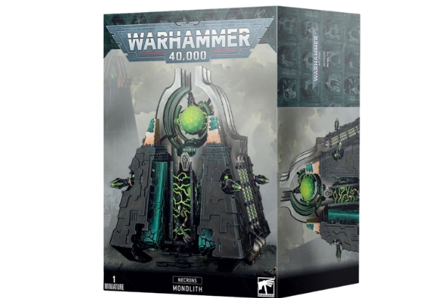 This 123-part plastic kit makes one Necron Monolith. It is supplied with a 160mm round Citadel base and a clear hover stand.
